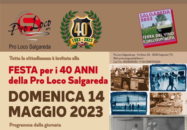 Tutta la cittadinanza è invitata alla Festa per i 40 anni della Pro Loco Salgareda, domenica 14 maggio 2023.